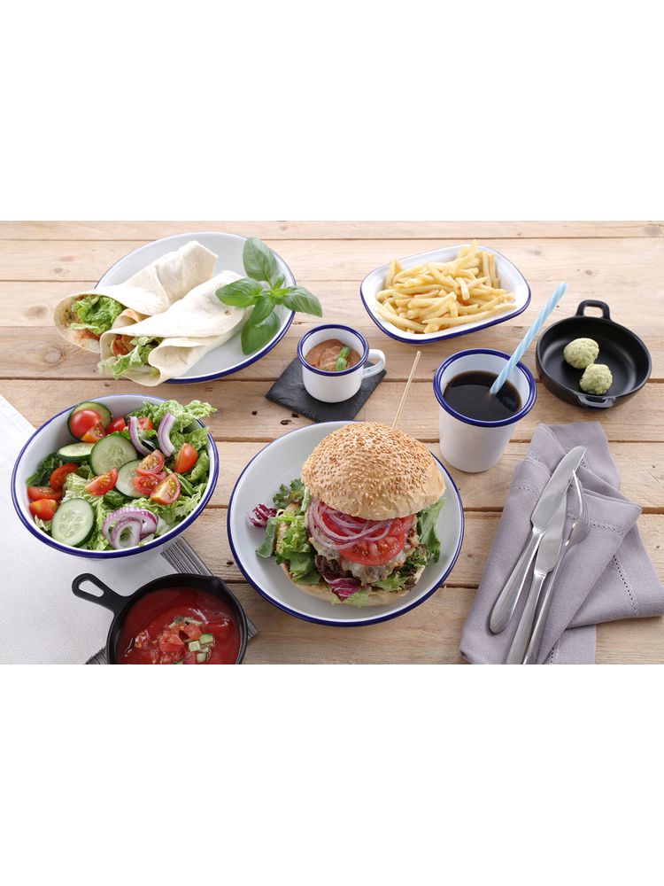 - сталь с белым эмалевым покрытием с изящной голубой каймой;